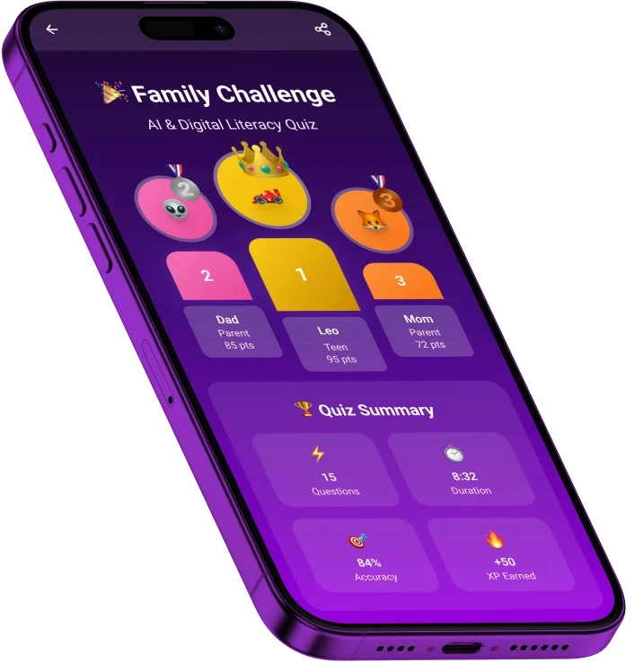 Supports both parents and teens in different ways. Teens learn to question what they see online (“Does this hand have the right number of fingers? How does the shadow move? Can you find two reliable sources?”), while parents get guidance to spark smarter conversations.